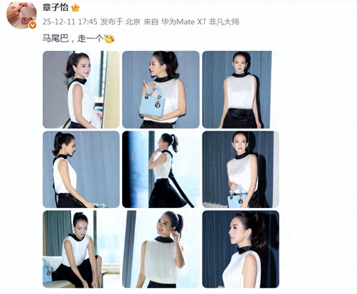 12月11日,演员章子怡在个人社交平台分享了一组近照,并开心发文:“马尾巴,走一个”,好心情藏都藏不住。